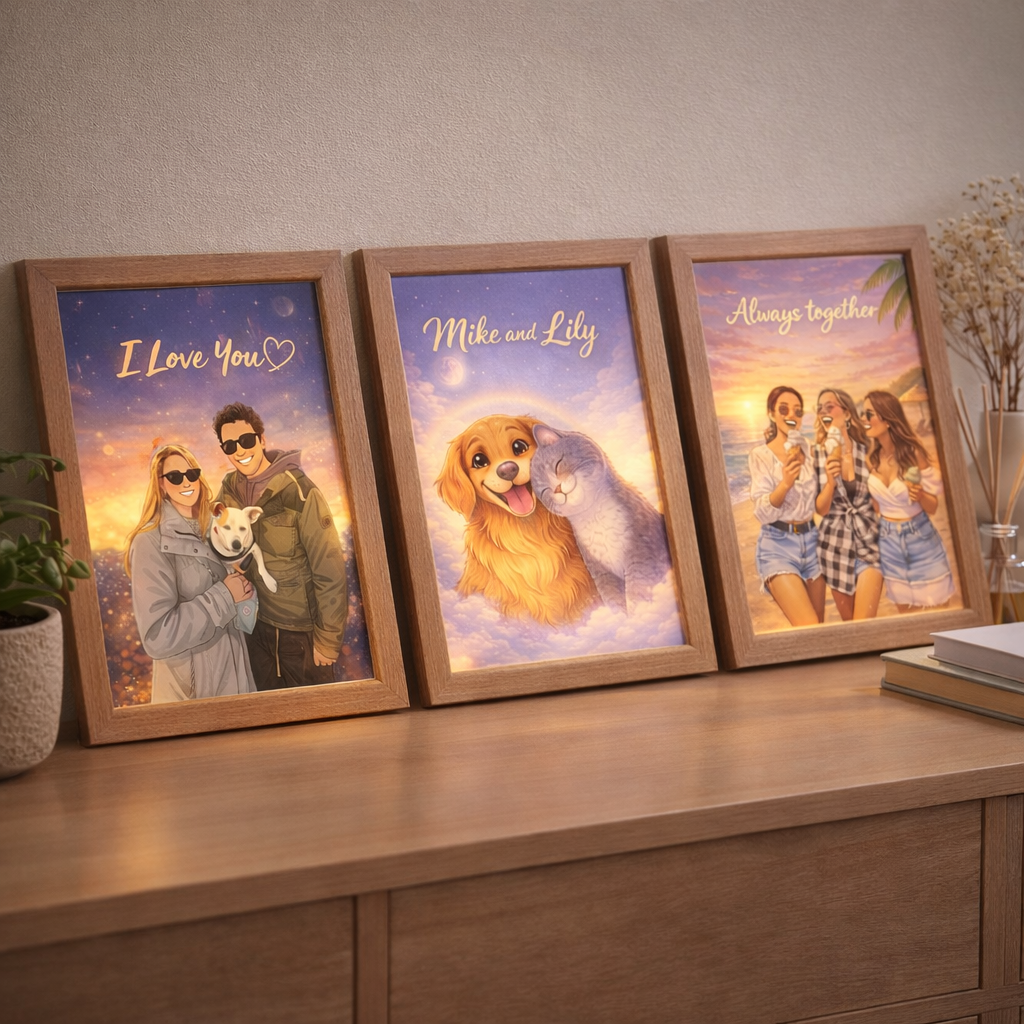 Personalize your own light frame with an illustration made from your photo, a soft way to keep memories close.